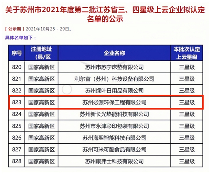 蘇州市工信局提名丨三星級上云企業獲獎名單:必源環保入列!